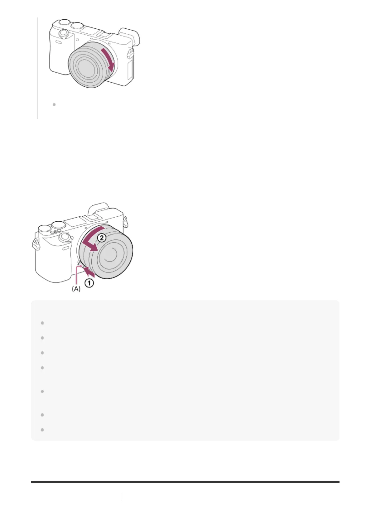 Keep pressing the lens release button (A) and turn the lens in the direction of the arrow until it