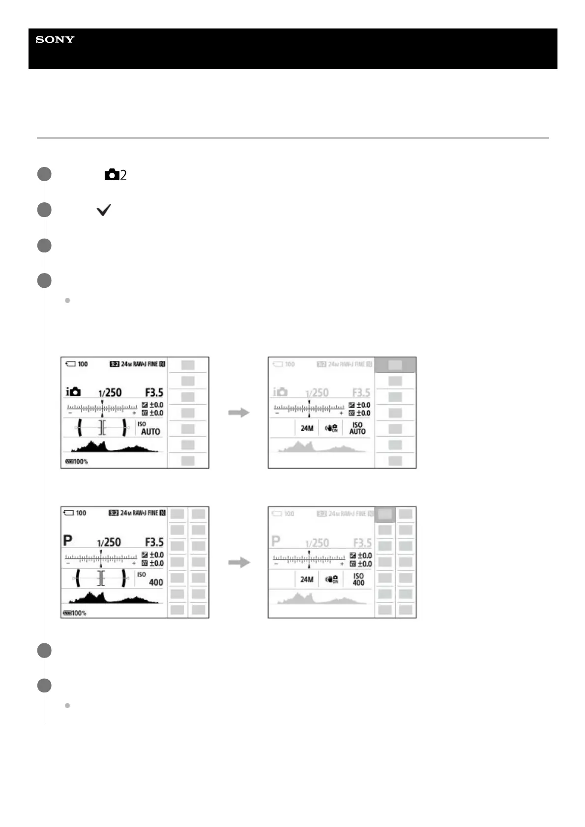 Select the desired function in step 5, then press the center of the control wheel. The dedicated setting screen for the