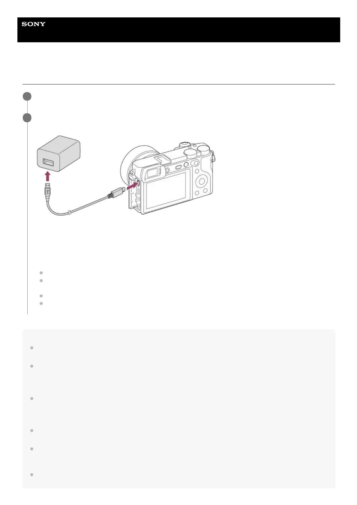 Connect the camera with the battery pack inserted to the AC Adaptor (supplied) using the micro USB cable