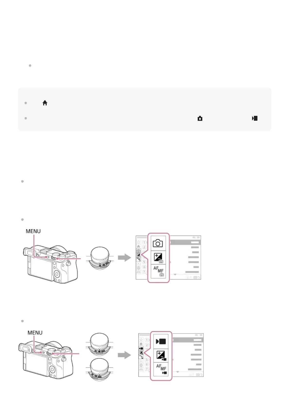 Relationship between the Still/Movie/S&Q dial and menu screen