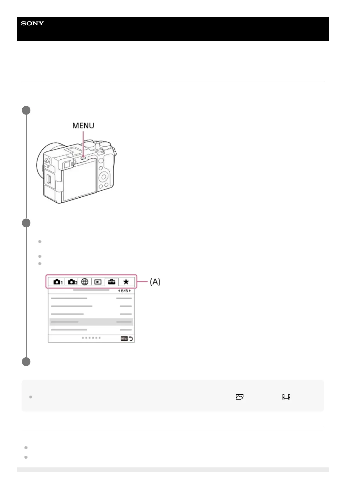 Select a MENU tab (A) at the top of the screen, and press the left/right side of the control wheel to move to