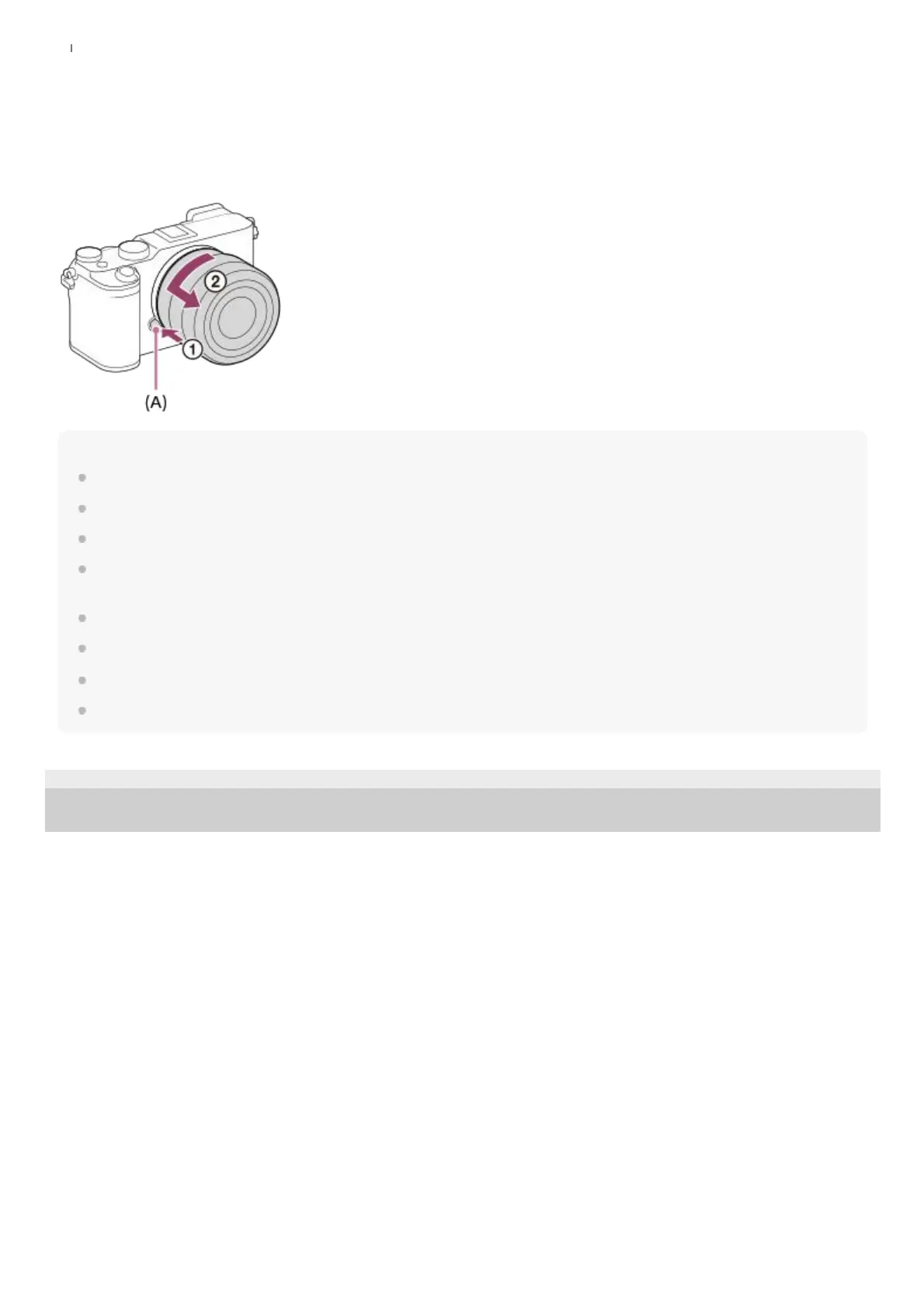A Mount Adaptor (sold separately) is required to use an A-mount lens (sold separately). When using the Mount Adaptor, refer to