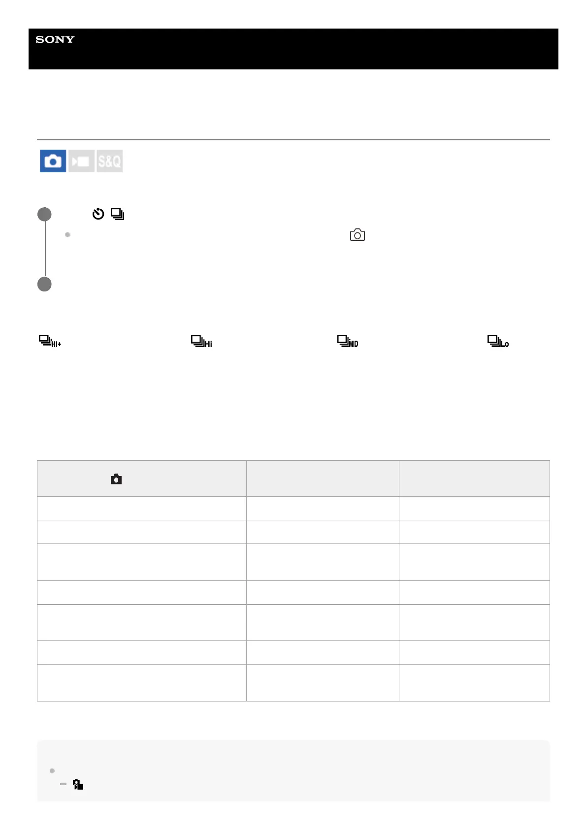 Continuous Shooting: Hi+ / Continuous Shooting: Hi / Continuous Shooting: Mid/