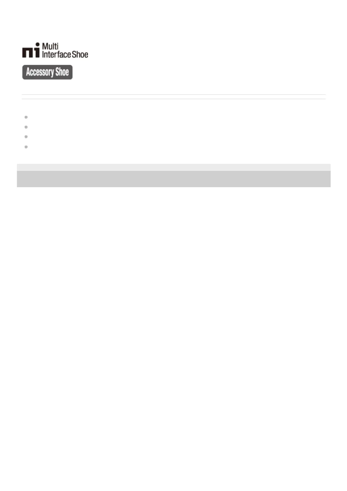 For details on compatible accessories for the Multi Interface Shoe, visit the Sony website, or consult your Sony dealer or local authorized Sony