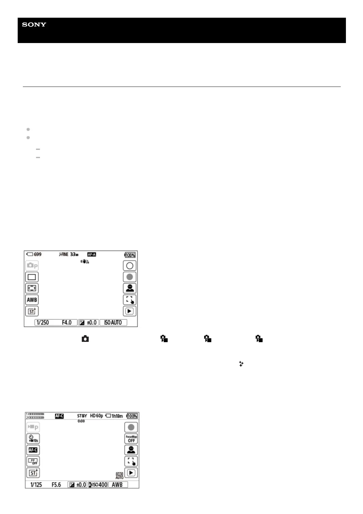 Some functions have icons for touch operations (touch function icons). You can execute or change the settings of the