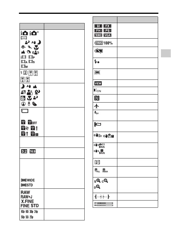 List of icons on the monitor