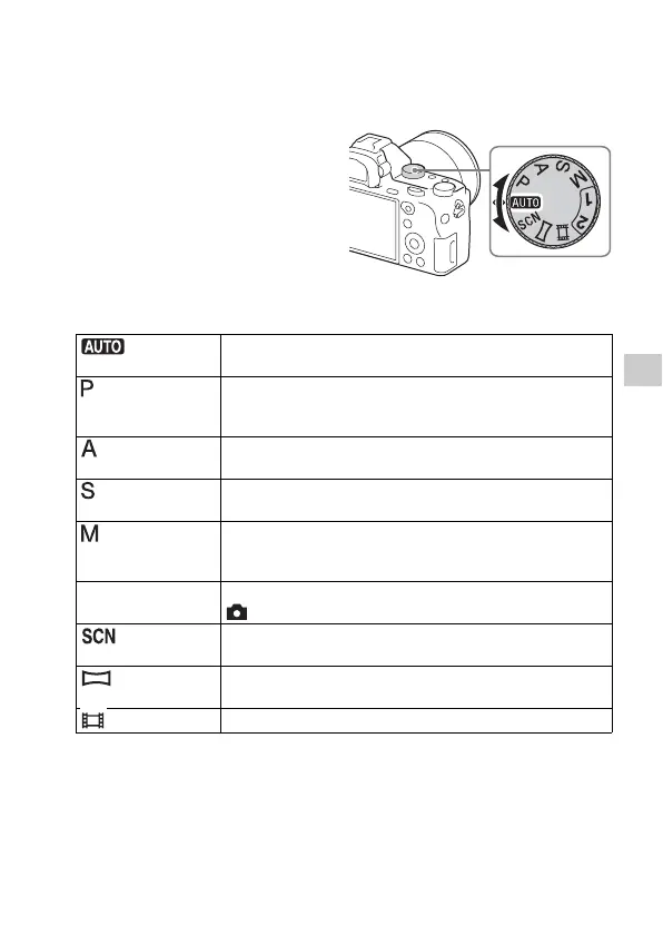 (Auto Mode) Allows you to shoot still images with the settings adjusted