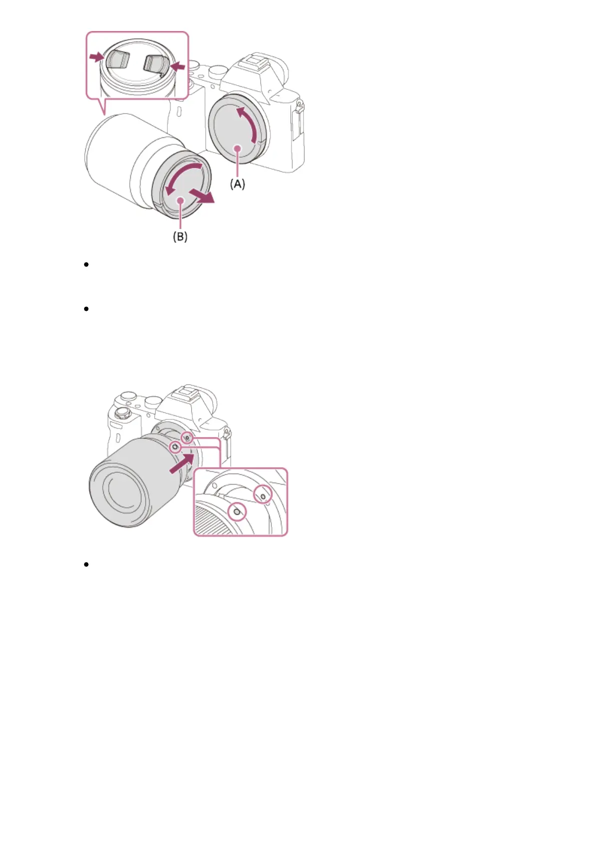 2. Mount the lens by aligning the two white index marks (mounting indexes) on