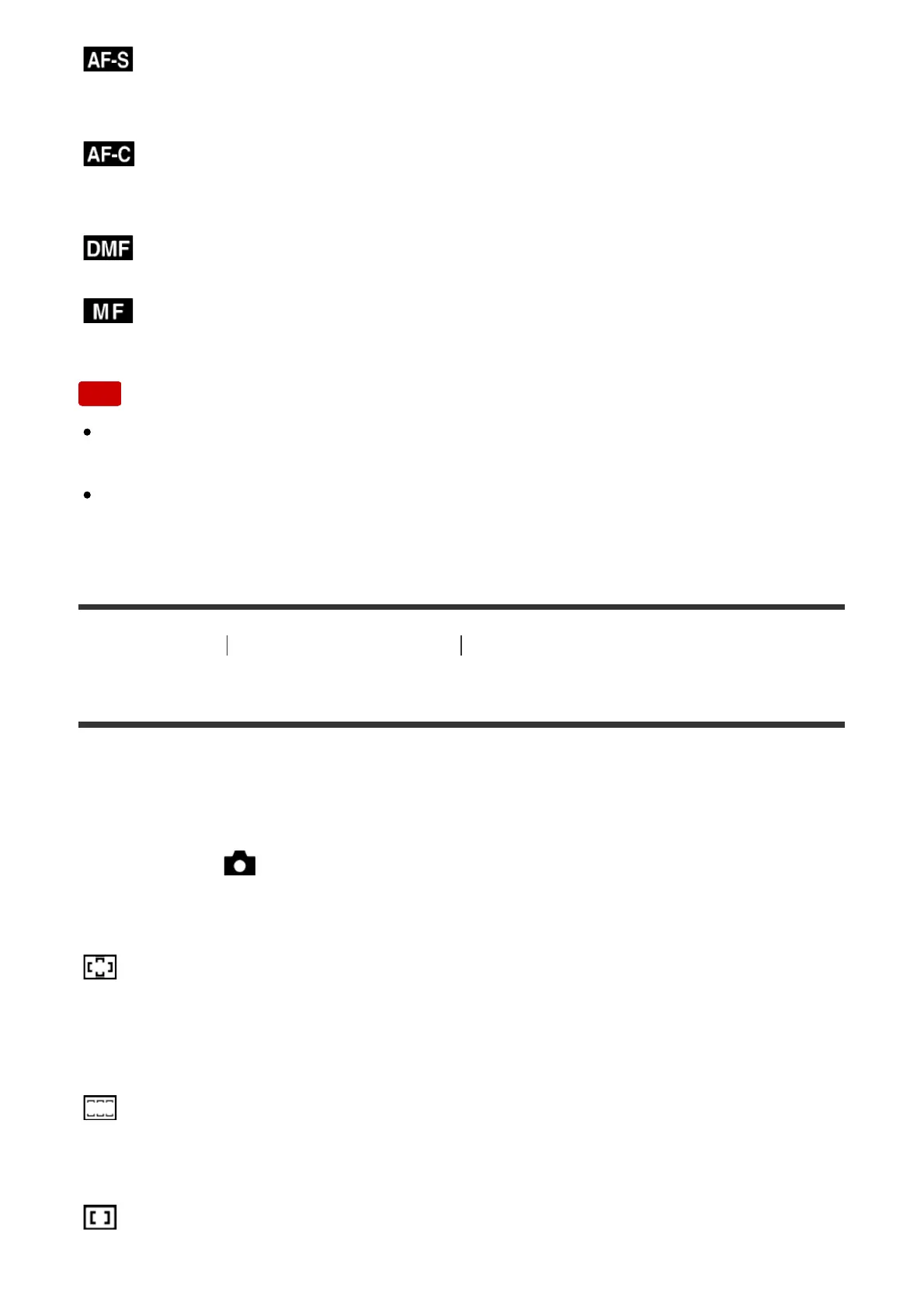 1. MENU → (Camera Settings) → [Focus Area] → desired setting.