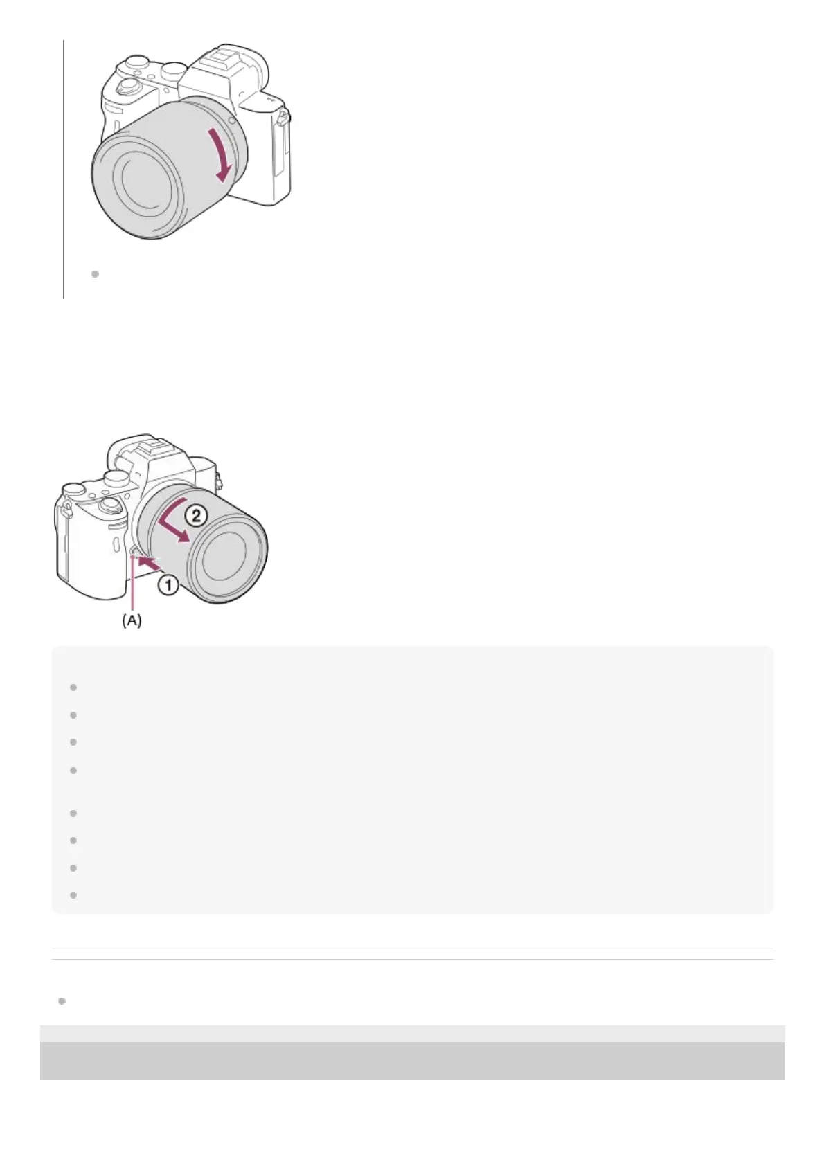 A Mount Adaptor (sold separately) is required to use an A-mount lens (sold separately). When using the Mount Adaptor, refer to