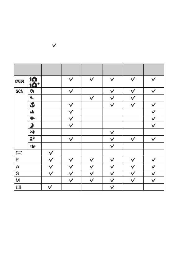 The functions you can use depend on the selected shooting mode.