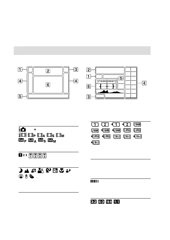 Ícones no ecrã de fotografia