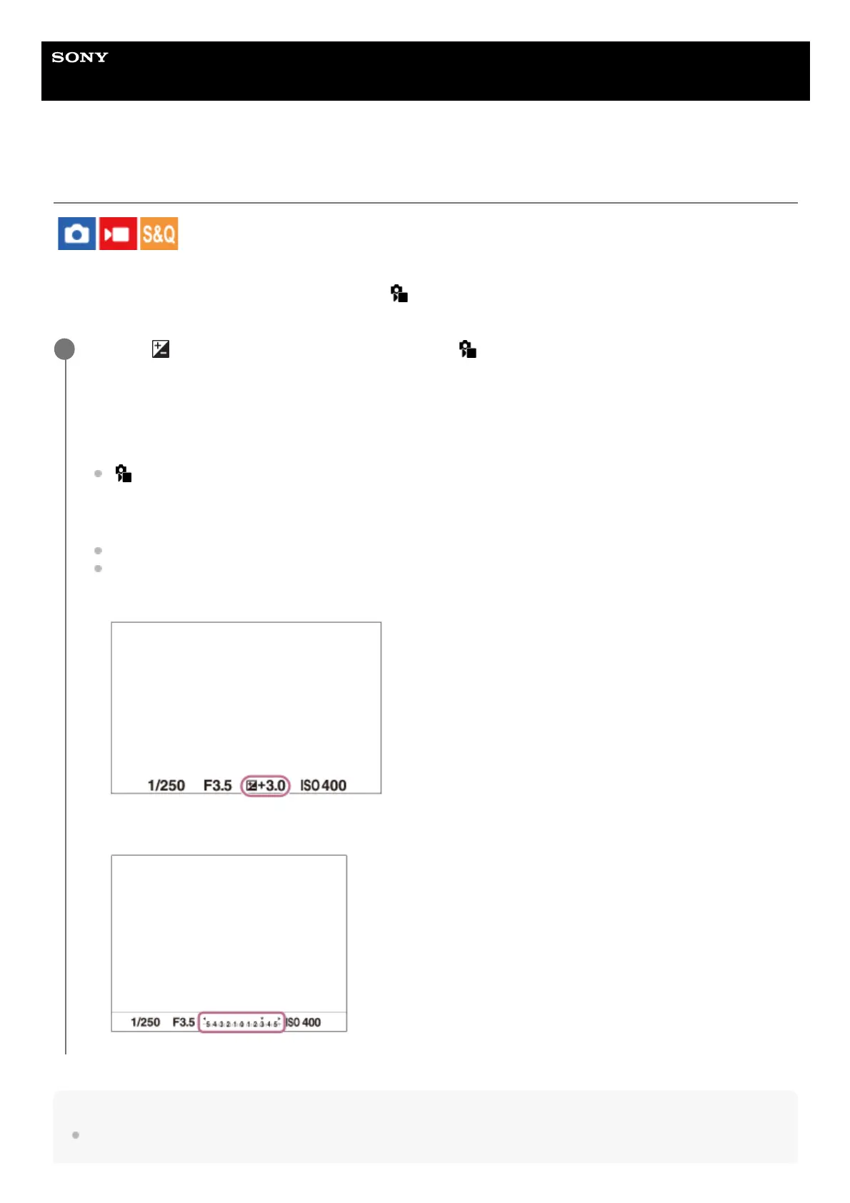 Only a value between -3.0 EV and +3.0 EV with the equivalent image brightness appears on the screen when shooting. If you set