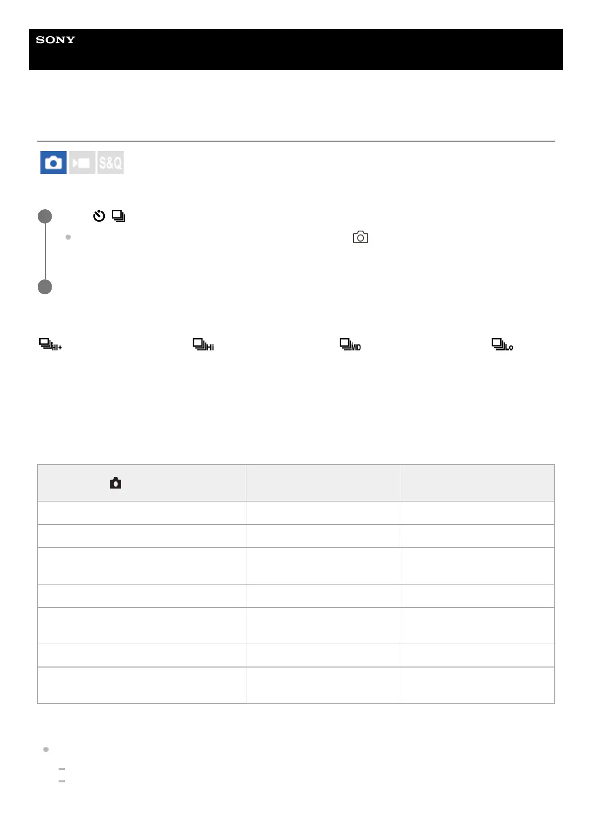 Continuous Shooting: Hi+ / Continuous Shooting: Hi / Continuous Shooting: Mid/