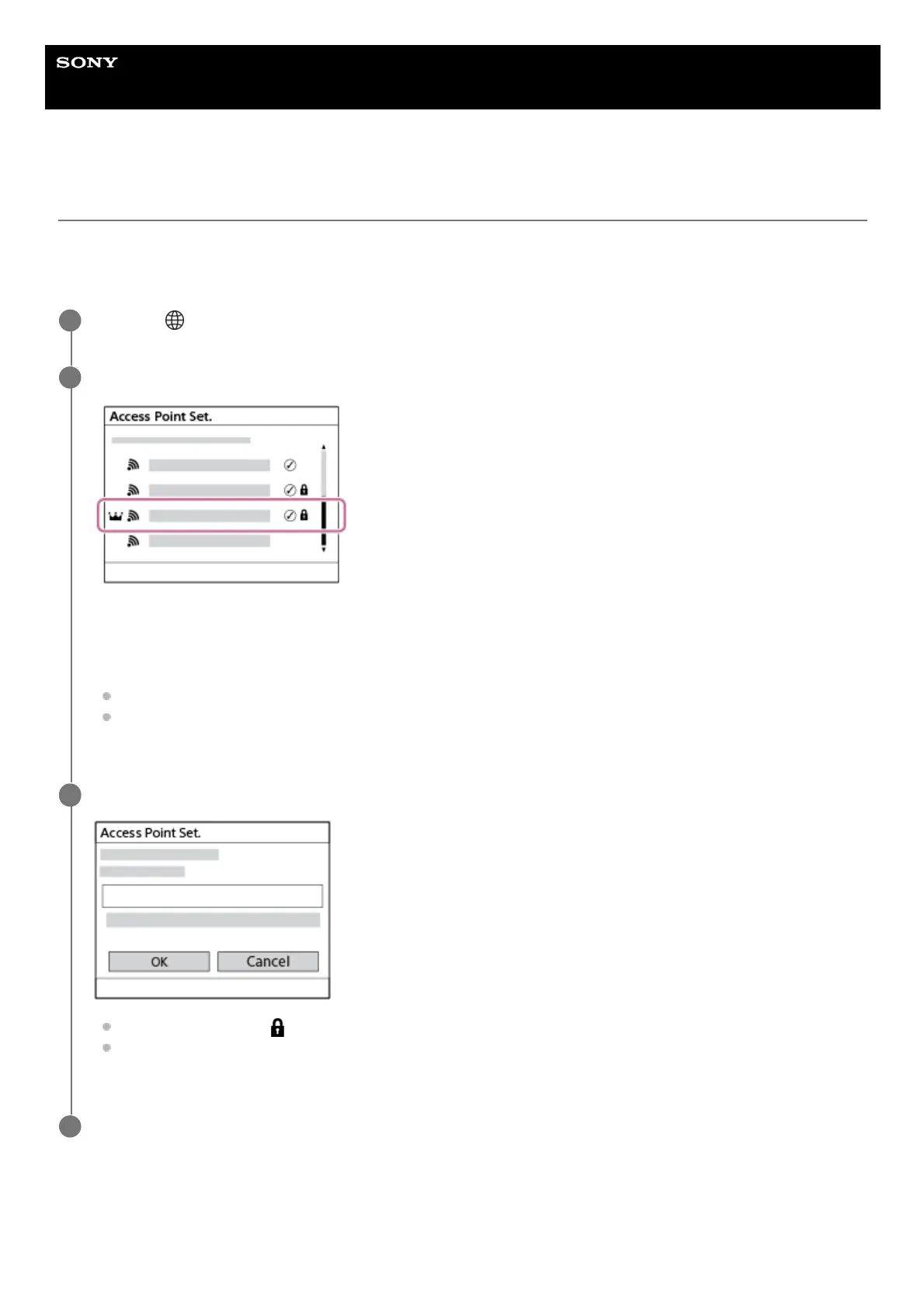 When the desired access point is not displayed on the screen: Select [Manual Setting] and set the access
