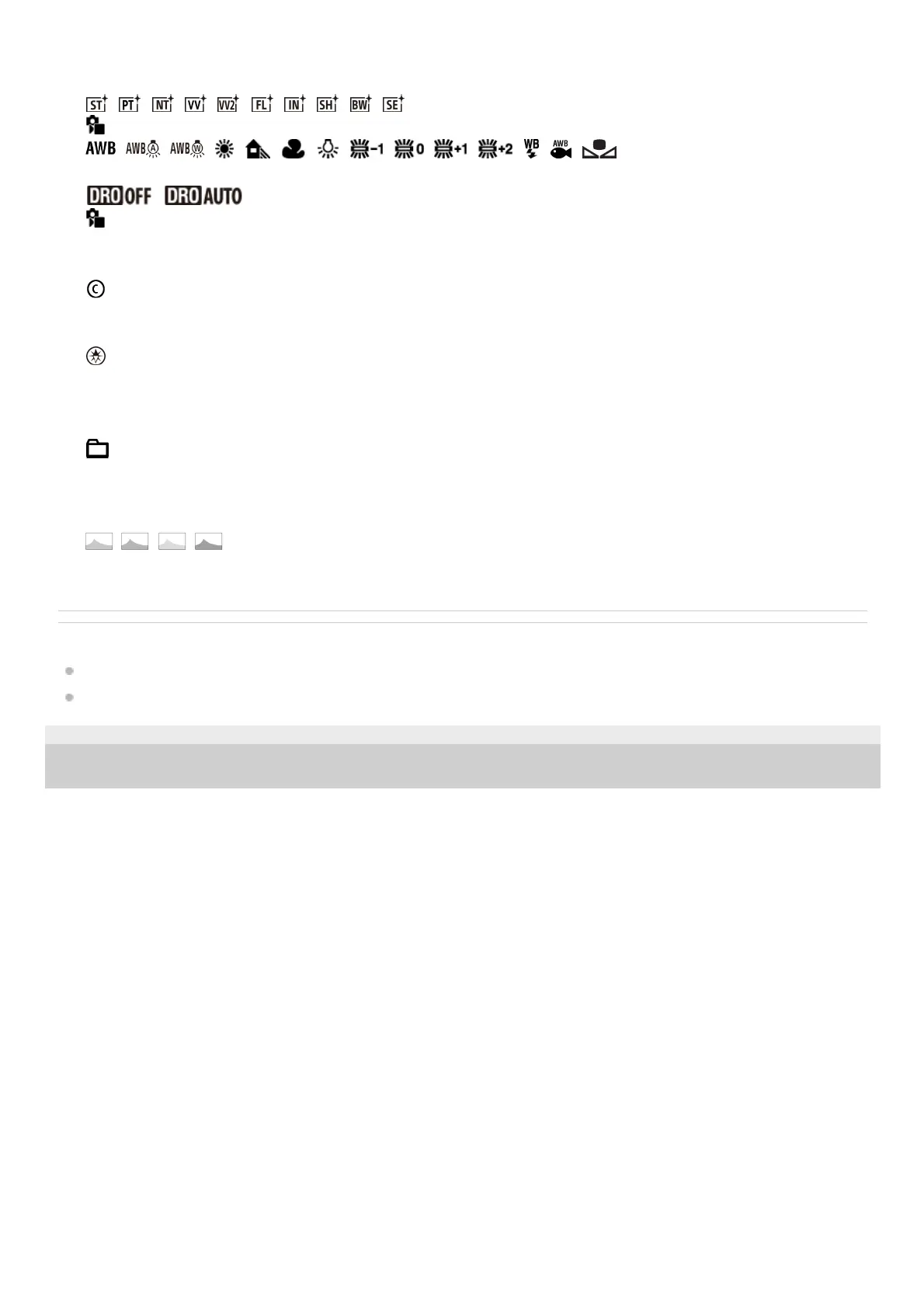 White Balance (Auto, Preset, Underwater Auto, Custom, Color temperature, Color filter)
