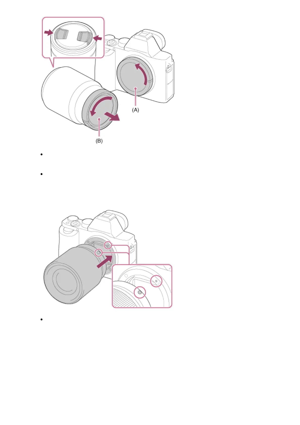When changing the lens, work quickly in a dust-free location to keep dust or debris