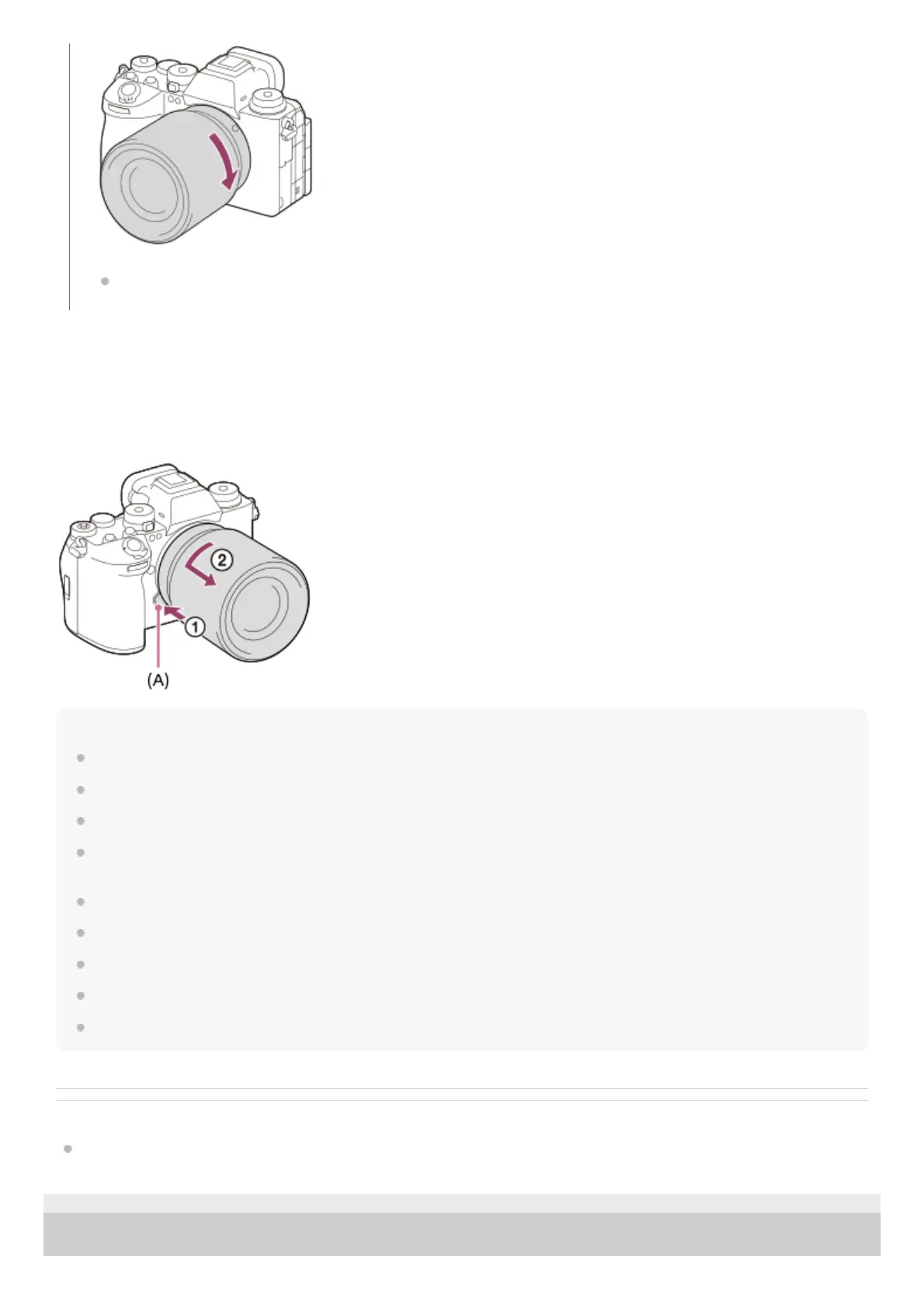 A Mount Adaptor (sold separately) is required to use an A-mount lens (sold separately). When using the Mount Adaptor, refer to