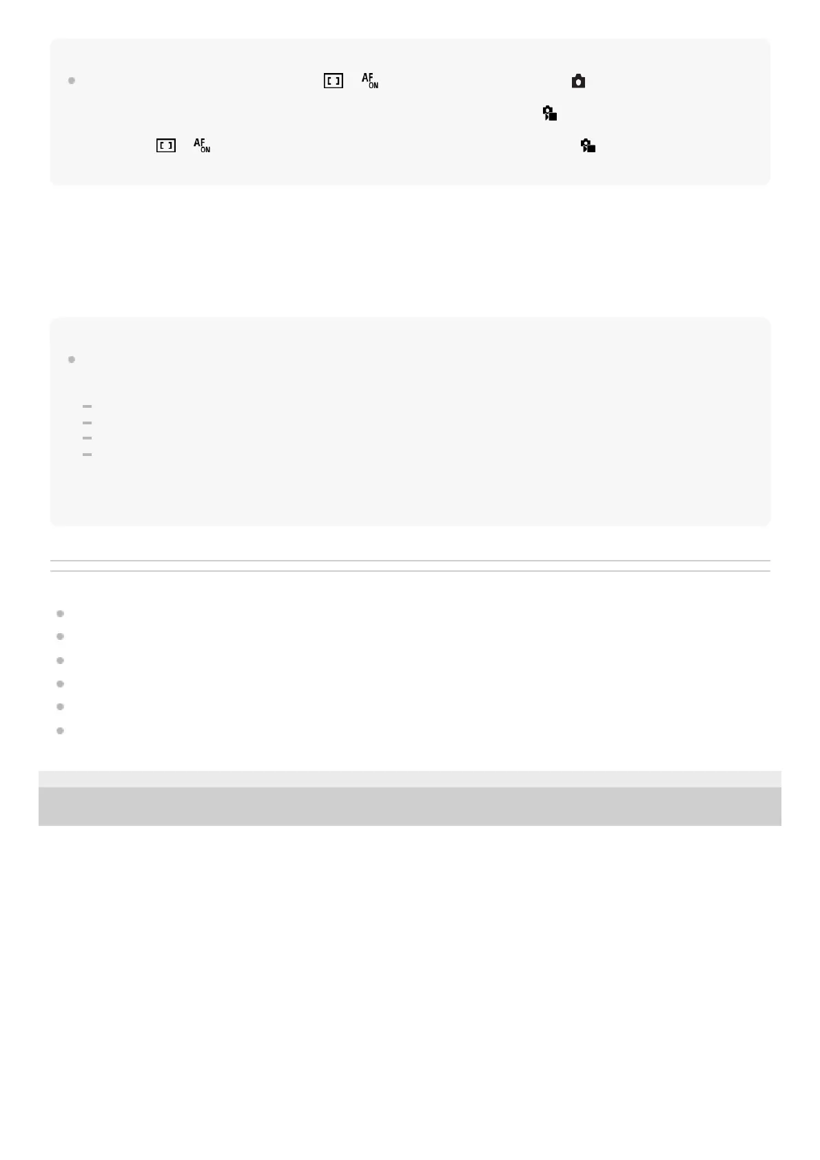 [Tracking On + ]: Tracks the subject in the center of the screen despite the setting for [ Focus Area] before you