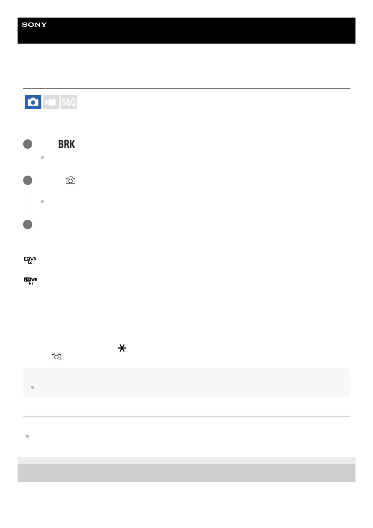 MENU → (Shooting) → [Drive Mode] → [Bracket Settings] → [Bracket Type] → [WB bracket] → desired