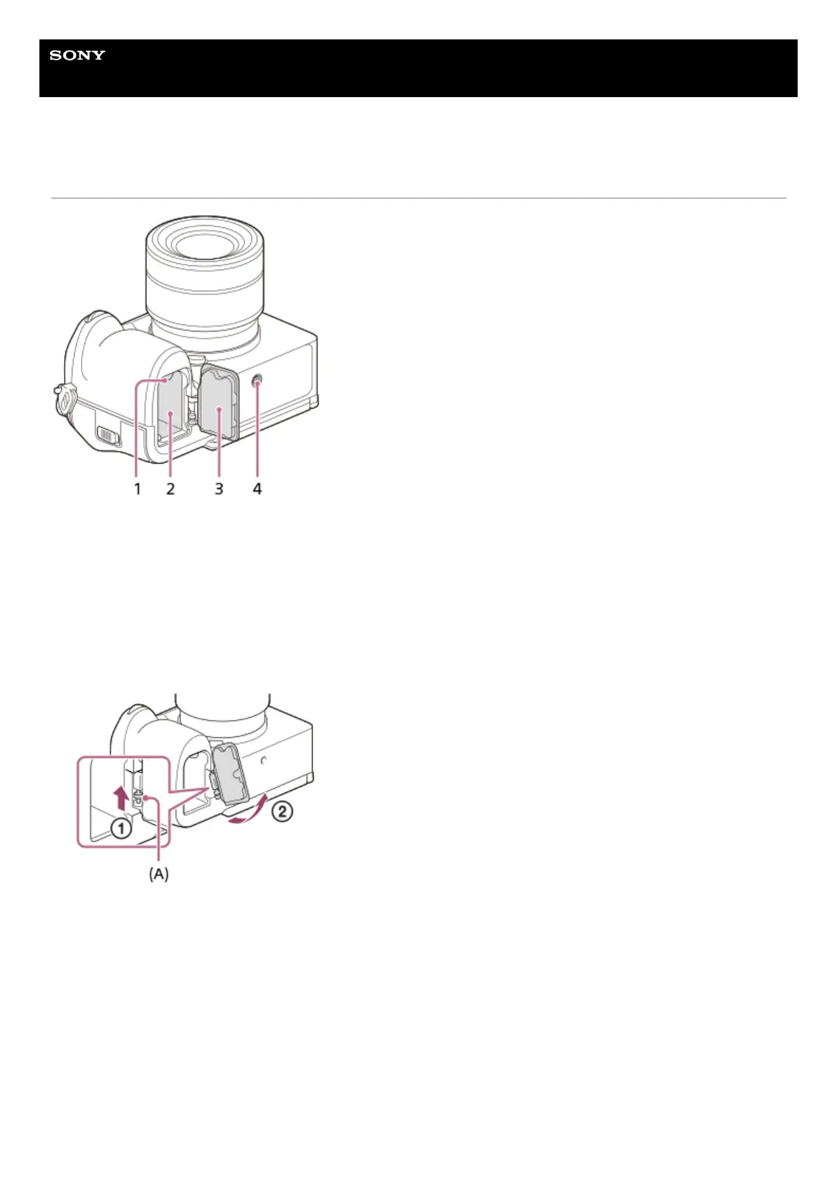 Pull the battery cover release lever (A) in the direction of the arrow, and then remove the battery cover.