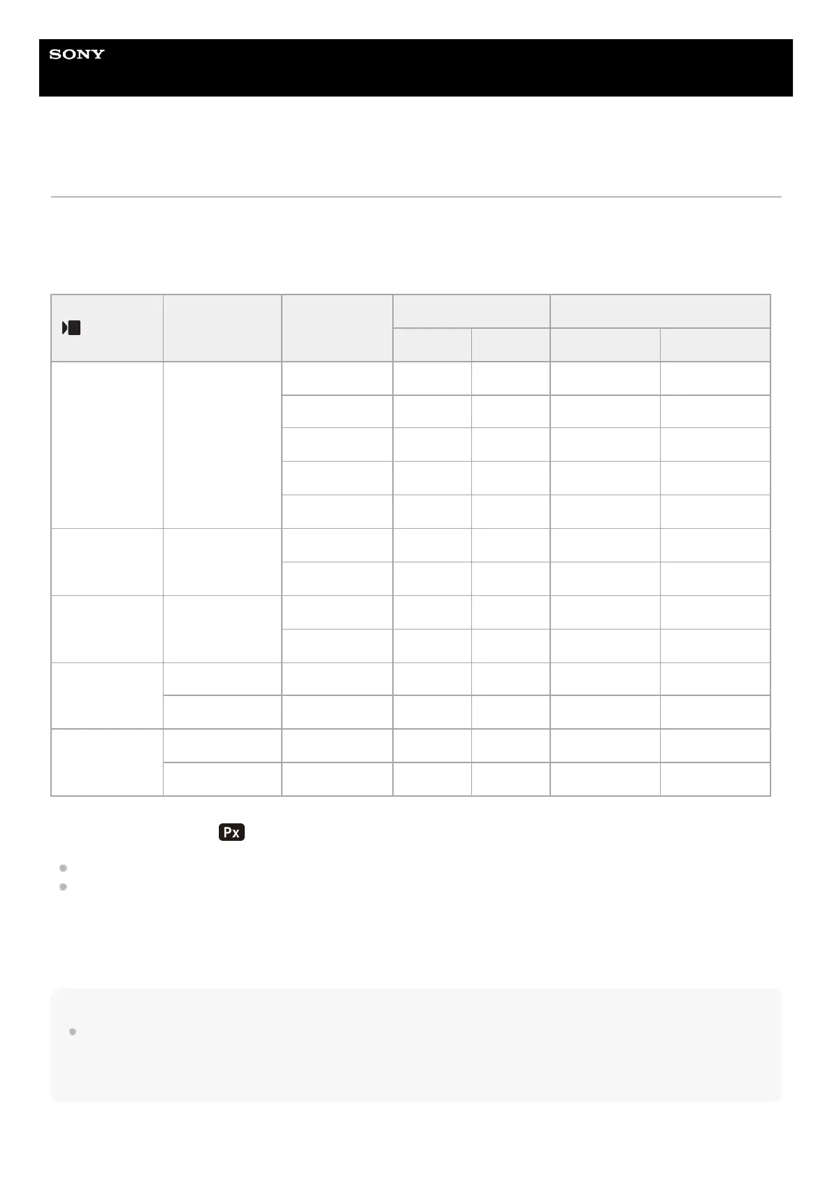 The times shown are recordable times using a Sony memory card.