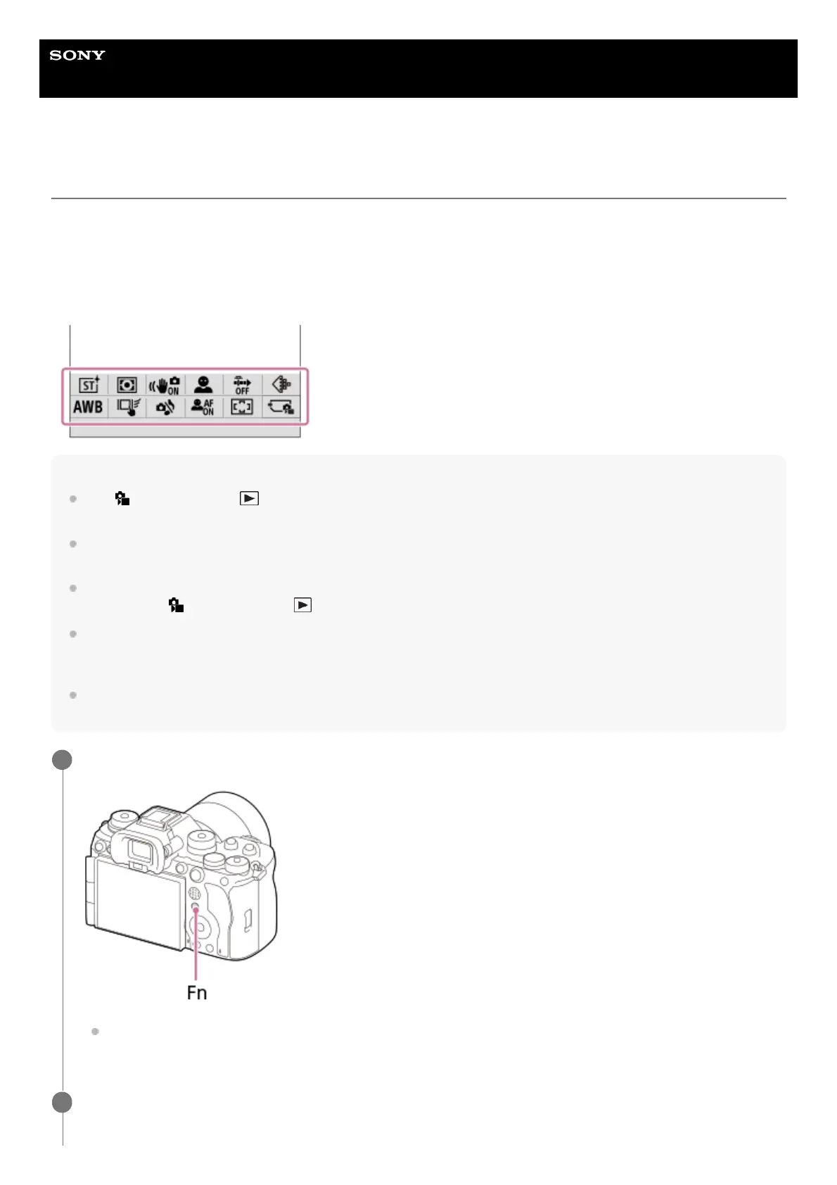 If you press the Fn (function) button while shooting or playing back images, a menu (function menu) containing frequently