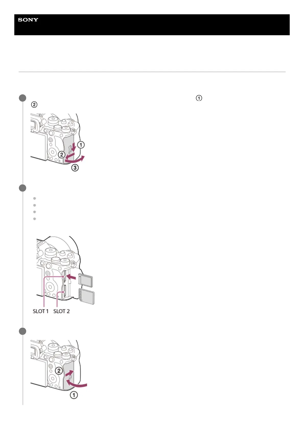 Both Slot 1 and Slot 2 support CFexpress Type A memory cards and SD memory cards.