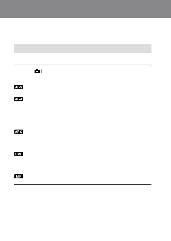 Selects the focus method to suit the movement of the subject.