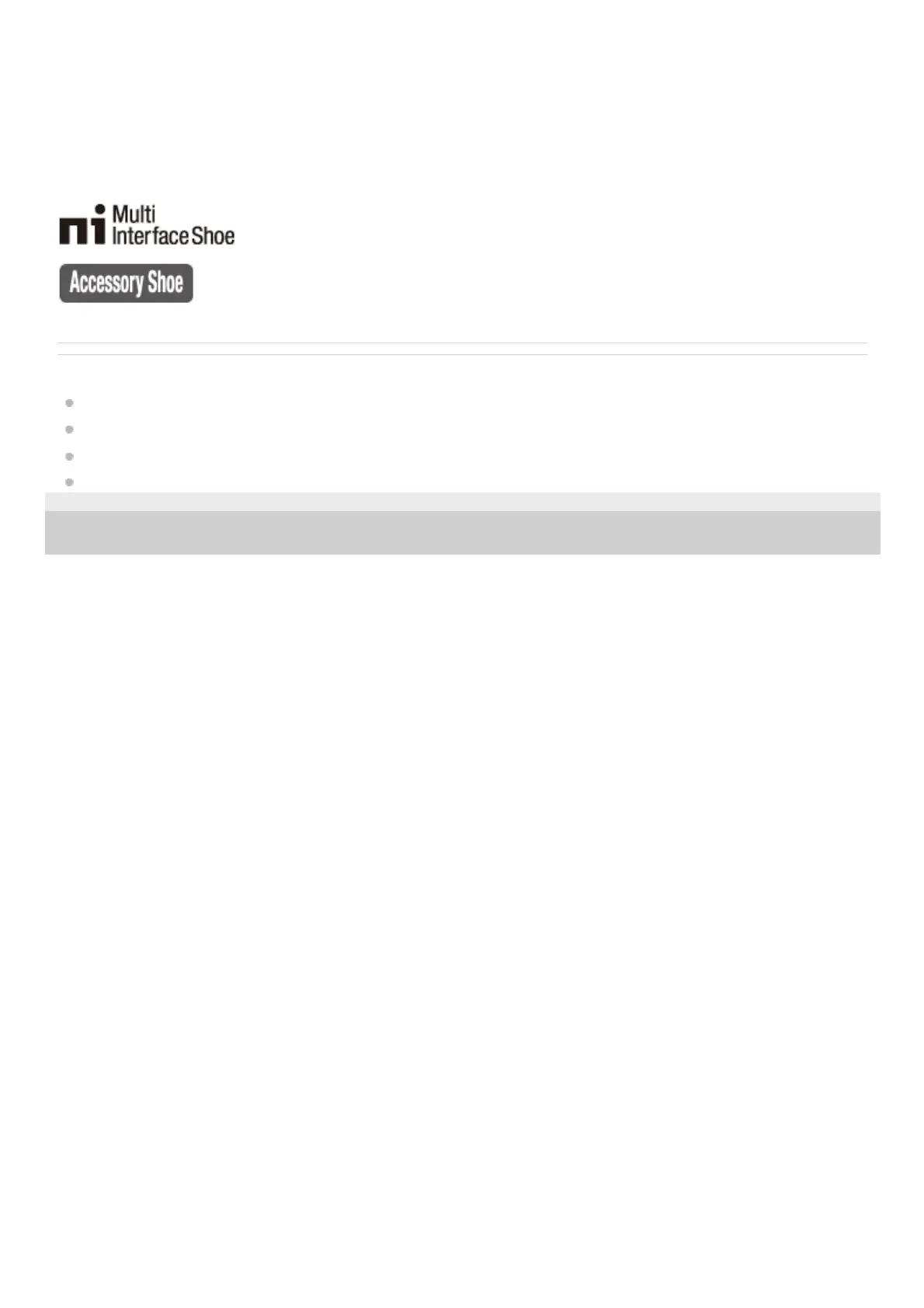 Accessories for the Accessory Shoe can also be used. Operations with other manufacturers’ accessories are not guaranteed.