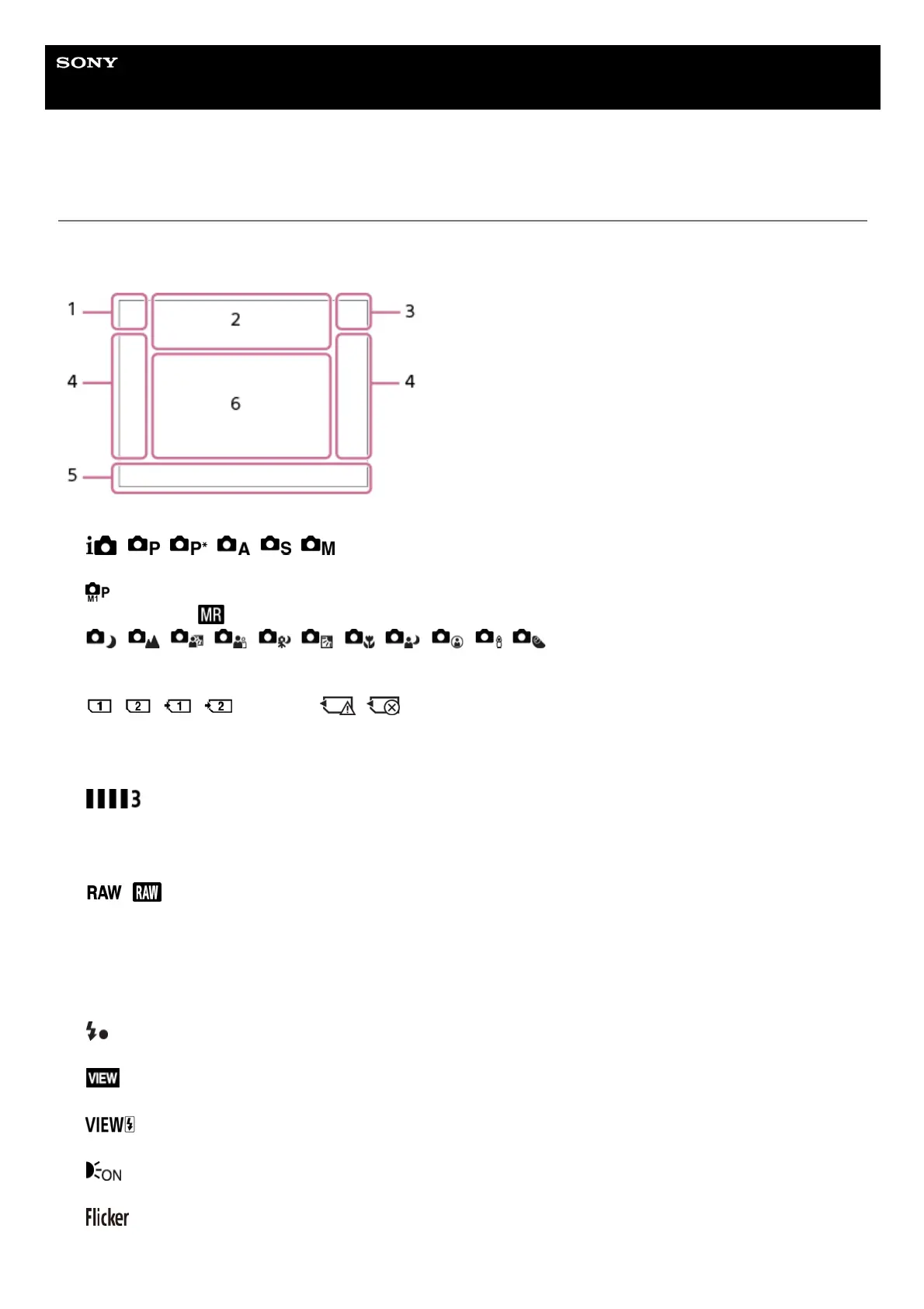 List of icons on the screen for shooting still images