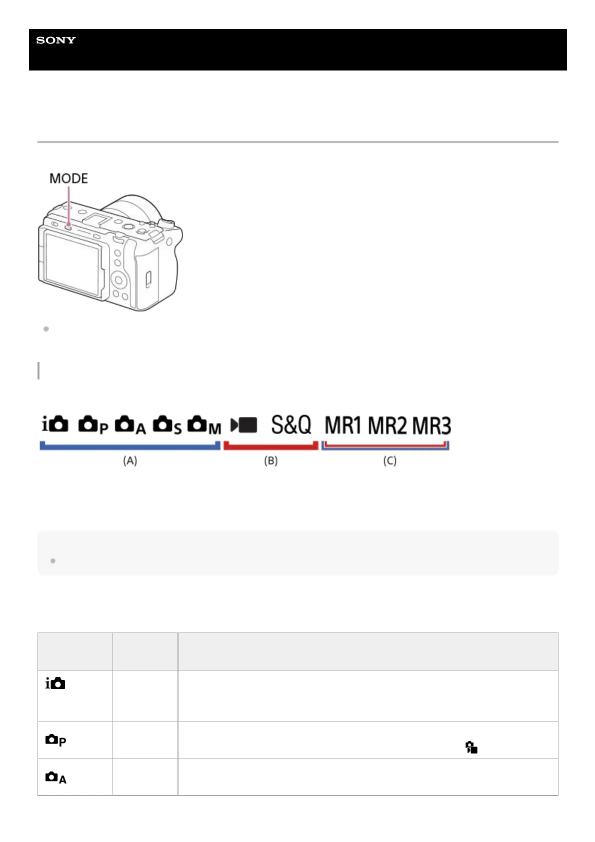 Use the MODE (Mode) button to select a shooting mode according to the subject and purpose of shooting.