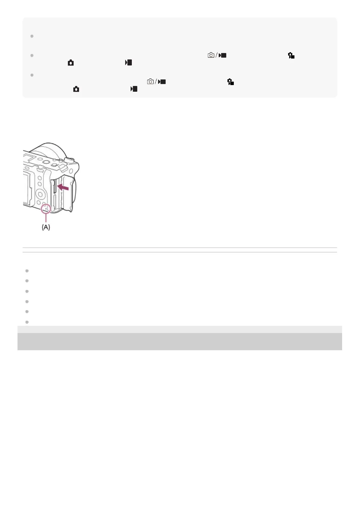 Open the memory card cover and make sure that the access lamp (A) is not lit, then push in the memory card lightly