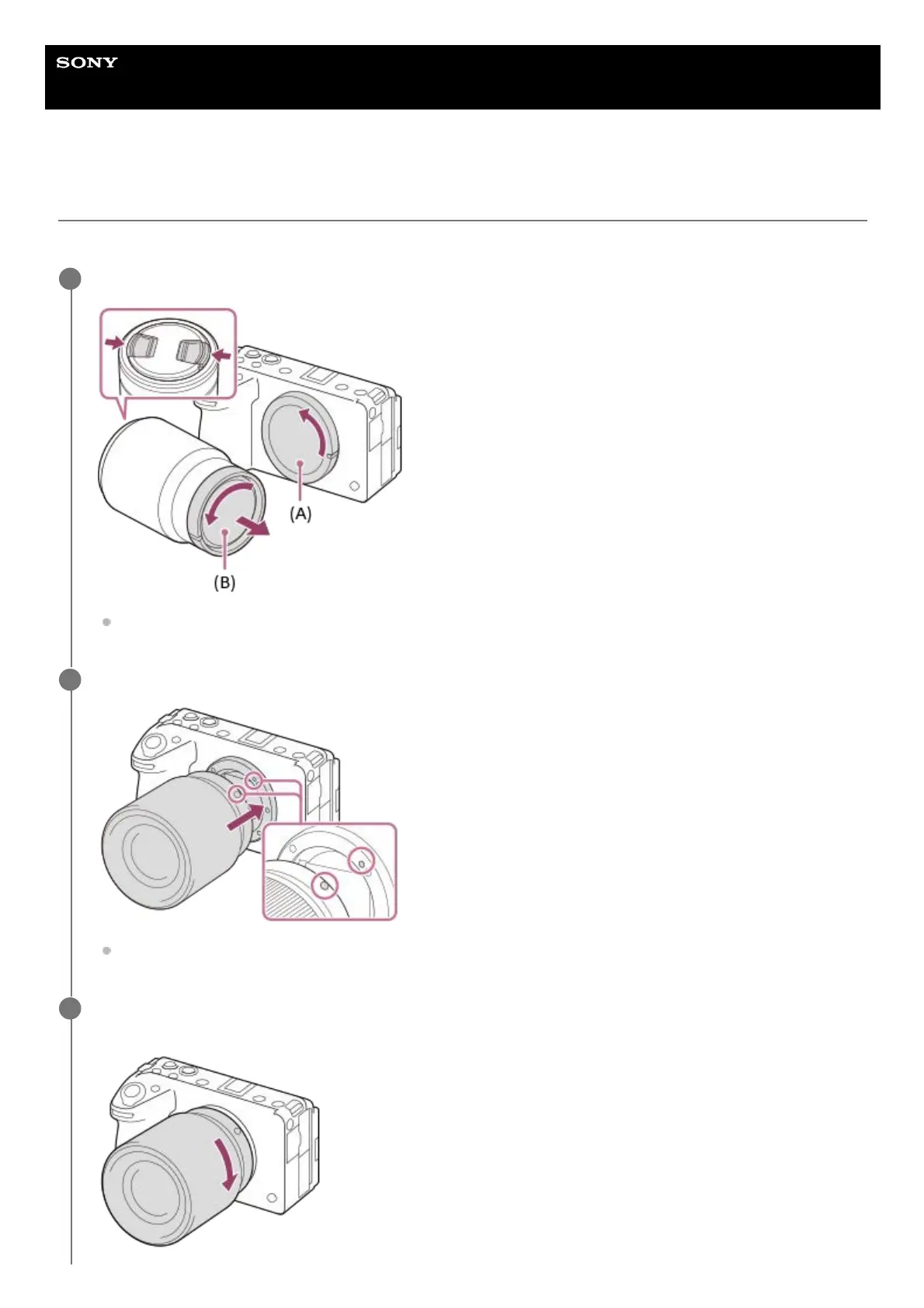 Mount the lens by aligning the two white index marks (mounting indexes) on the lens and camera.