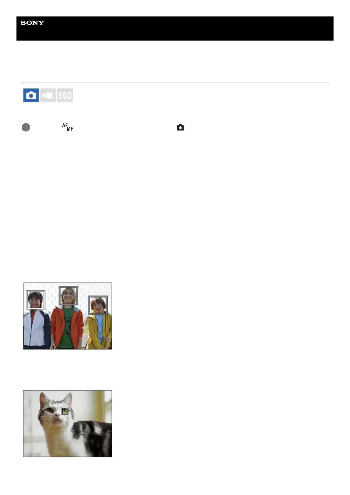 When the camera recognizes a subject, the white subject-recognition frame appears around the eye, head, or body.