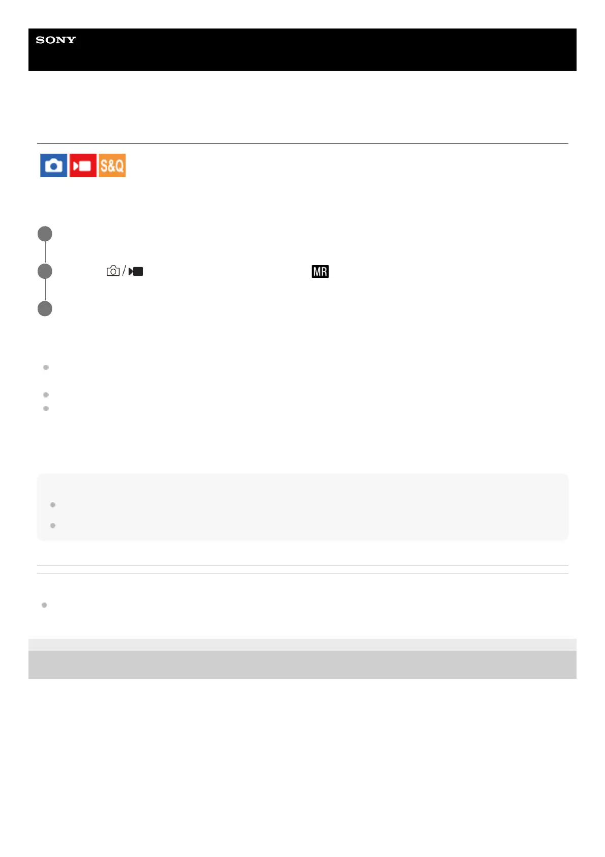 Allows you to register up to 3 often-used modes or product settings per shooting mode (Still/Movie/S&Q Motion/time-