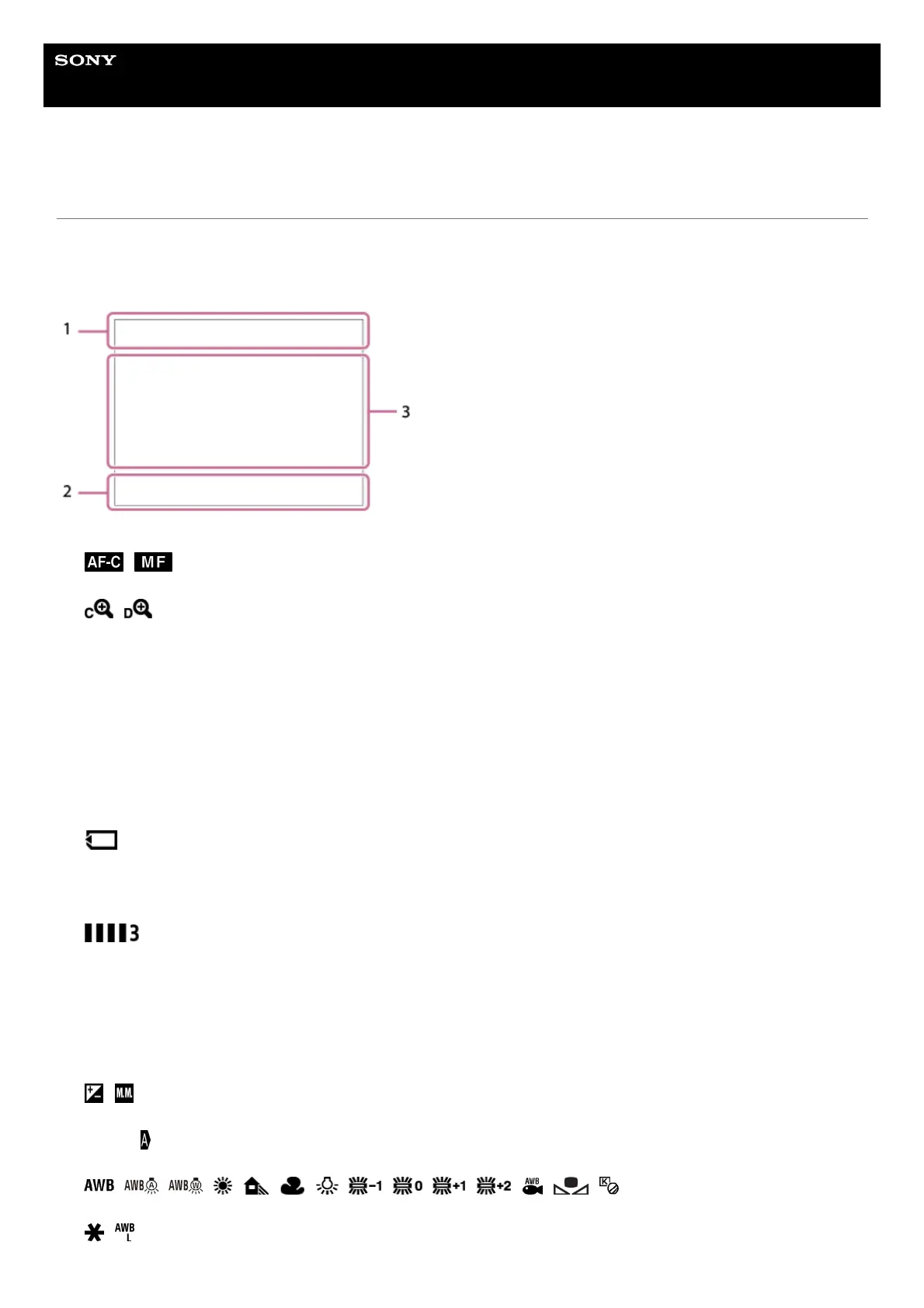 Descriptions are given below the indications of the icons.