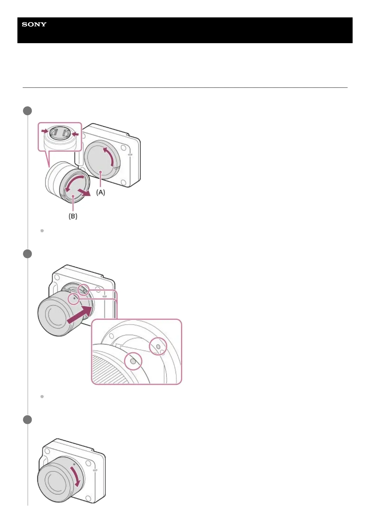 Remove the body cap (A) from the camera and the rear lens cap (B) from the rear of the lens.