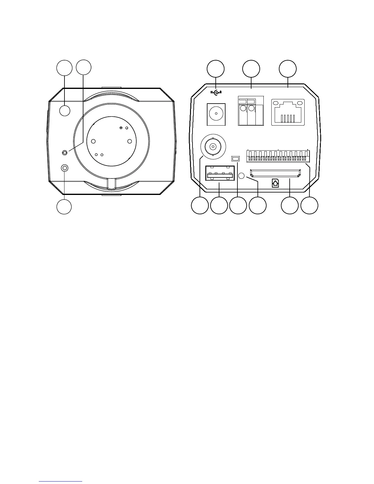 8. USB port: The user can use a USB device cable to connect the IP camera to the USB port on