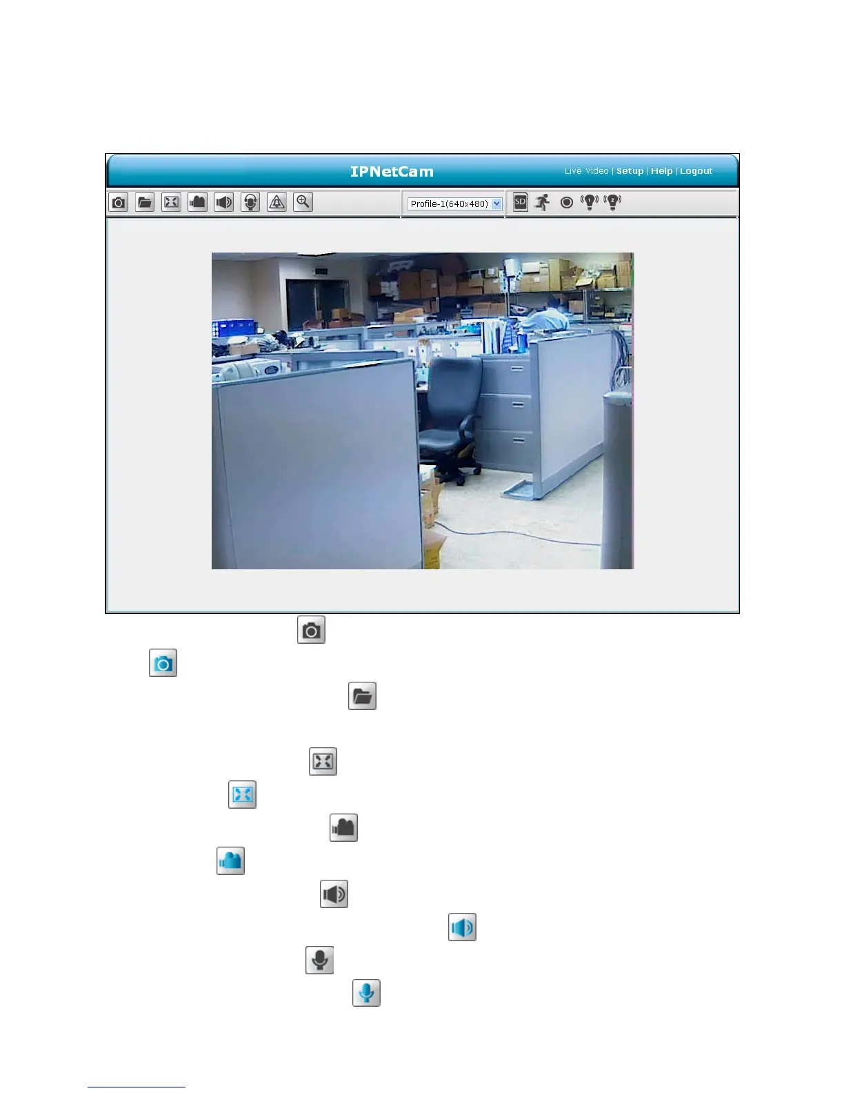 Snapshot: Click on the button to take a snapshot. The icon will change to a blue color