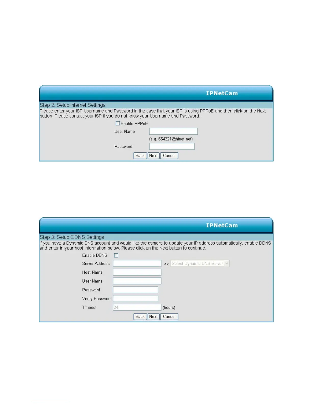 If you have a Dynamic DNS account and would like the camera to update your IP address