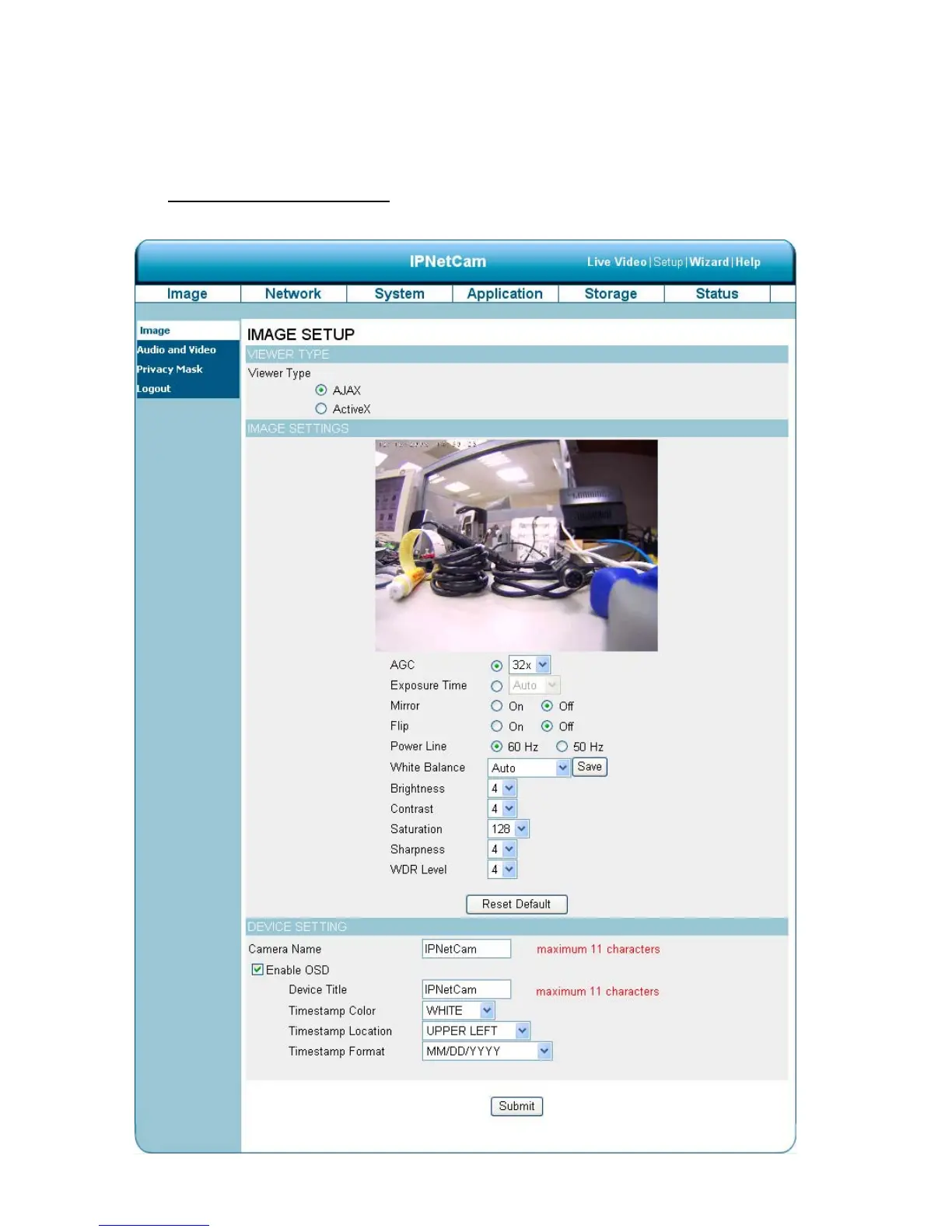 preview of the image will be shown in the window of Live Video. Click Submit to activate and save
