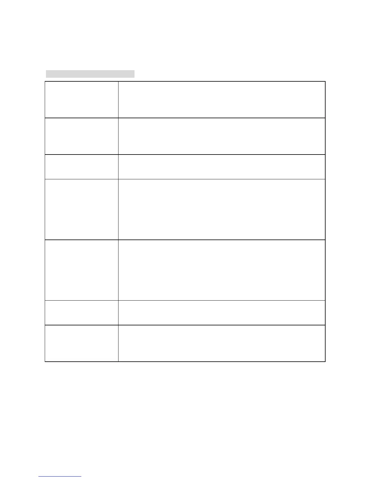 Description of function keys: