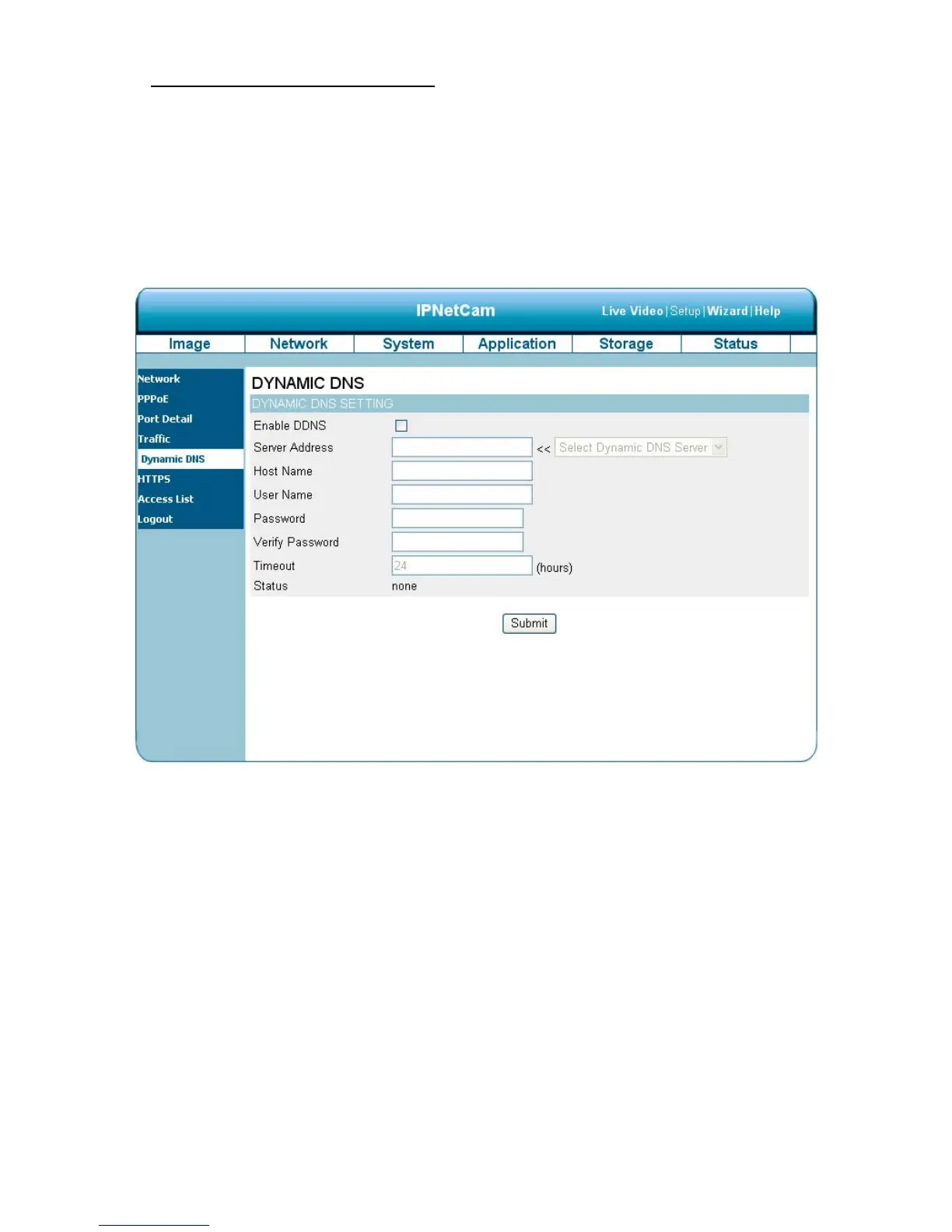 1. Click on the Dynamic DNS button on the upper left menu to enter the “Dynamic DNS” page.