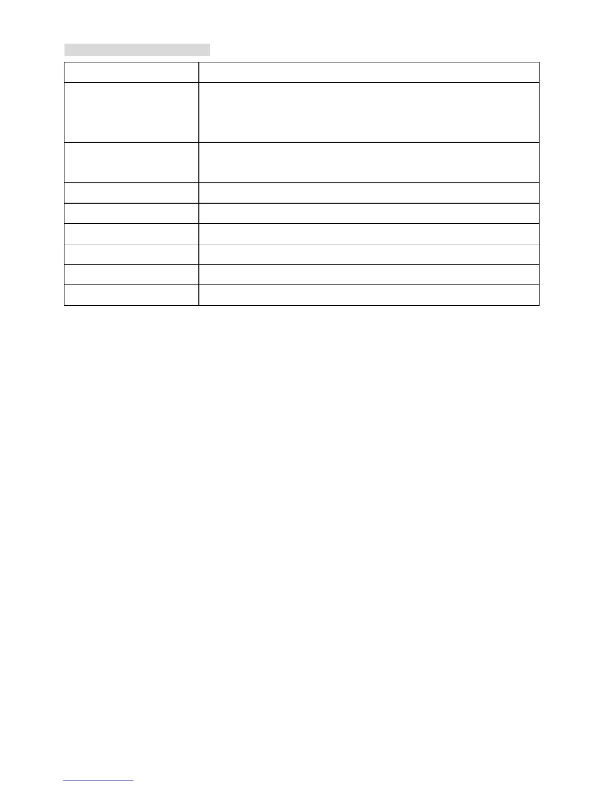 Description of function keys: