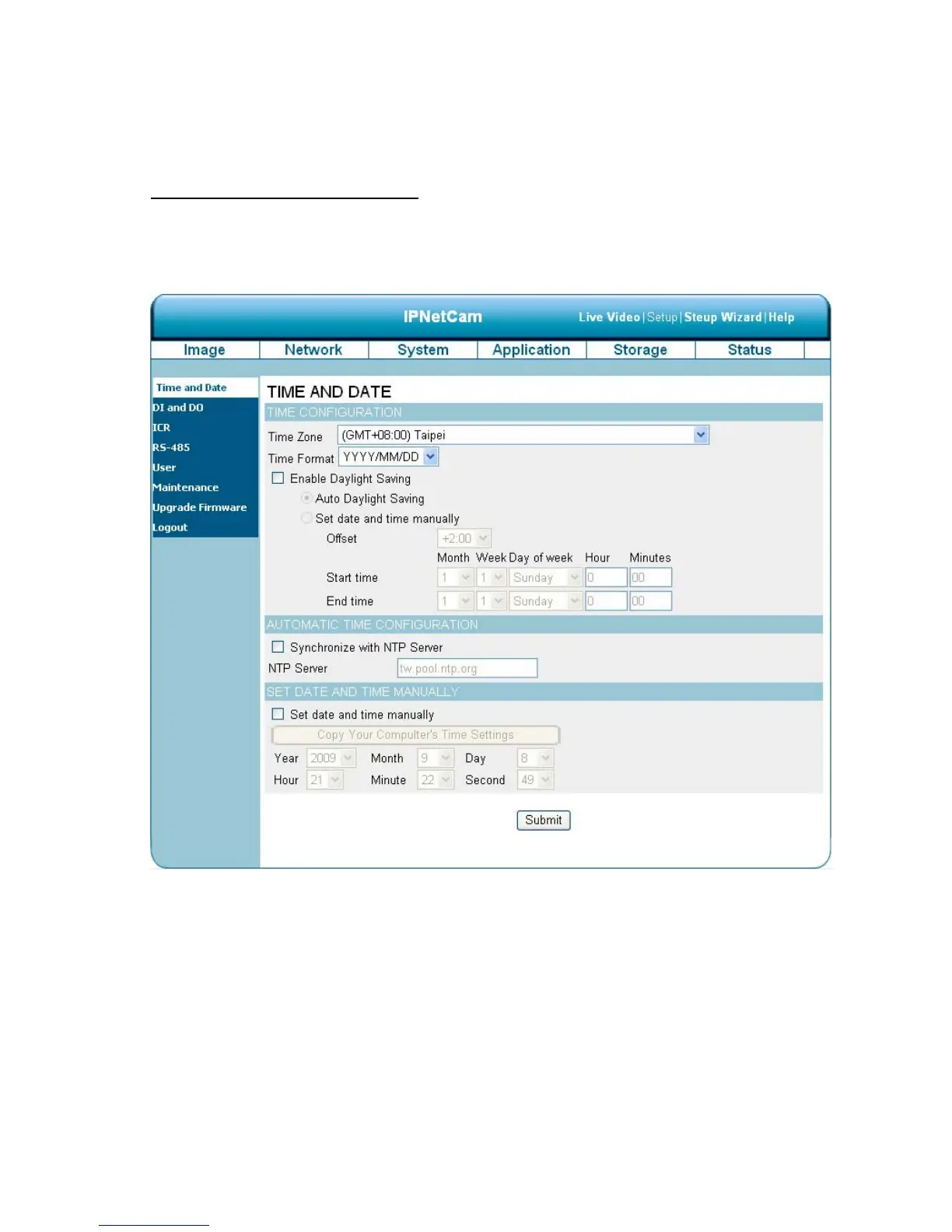 enable the daylight saving time. Then Select ”Auto Daylight Saving” or “Set date and time manually”.