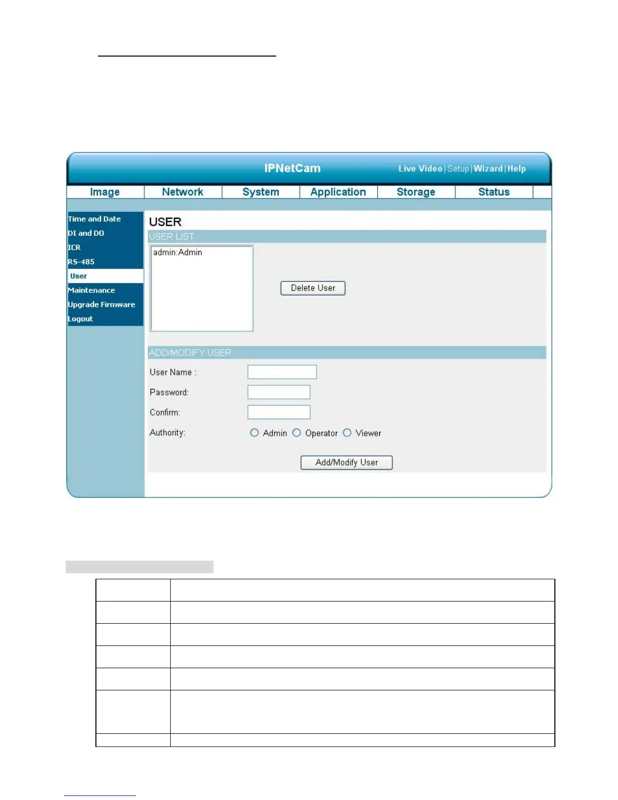 configure the OSD setting for your camera. Please follow the steps below to change/add the users’
