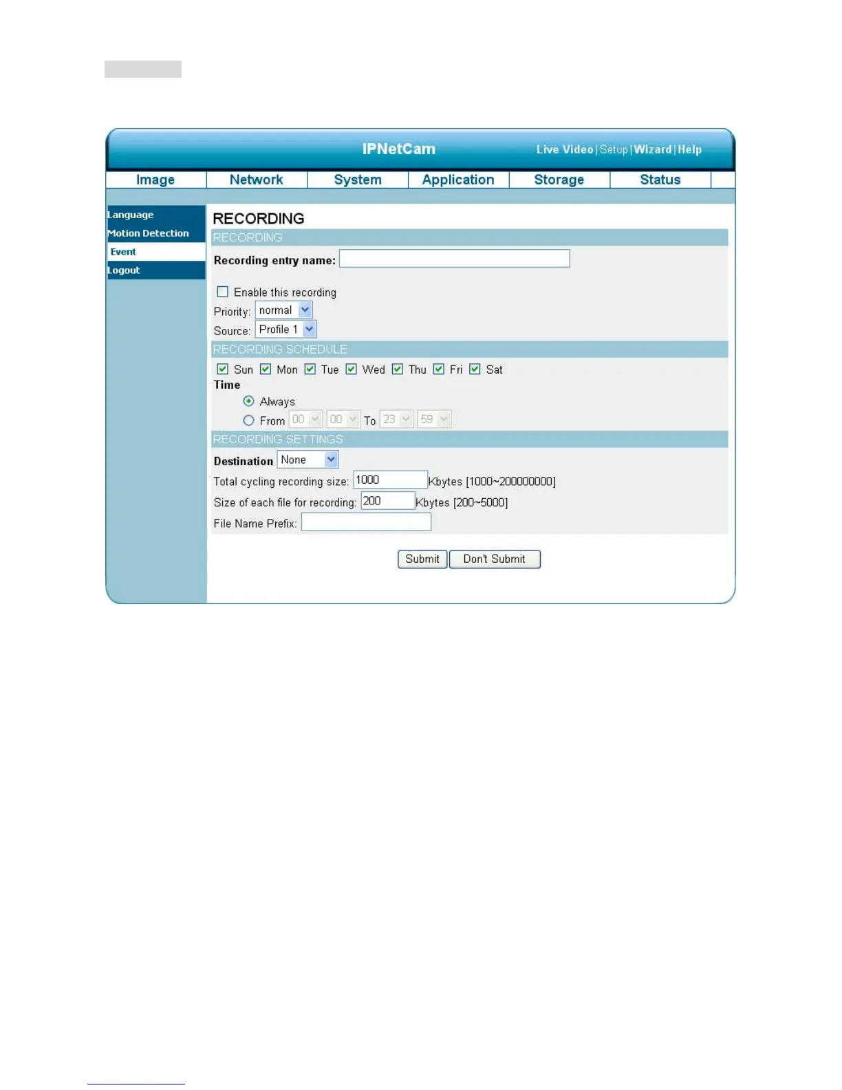 Click on the Add button in the Recording column to enter the “Recording” setting page.