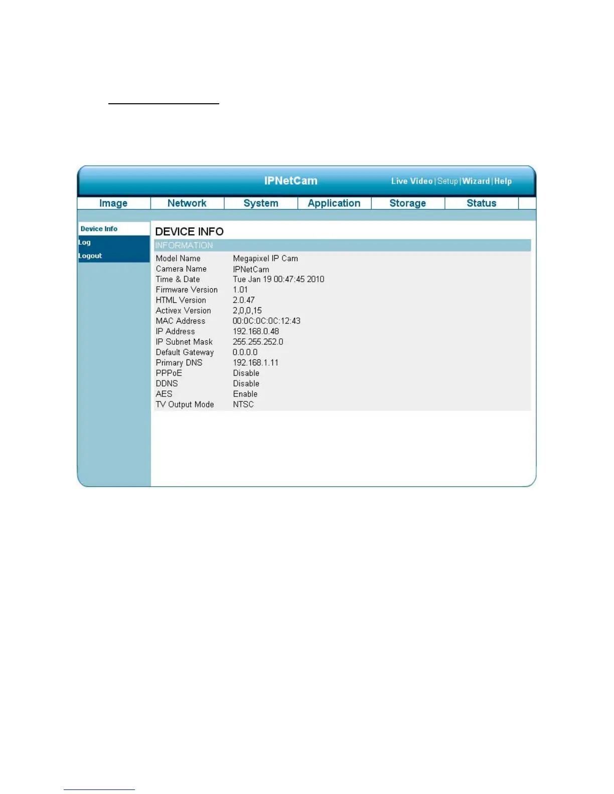 This page displays all the information about your device and network connection.
