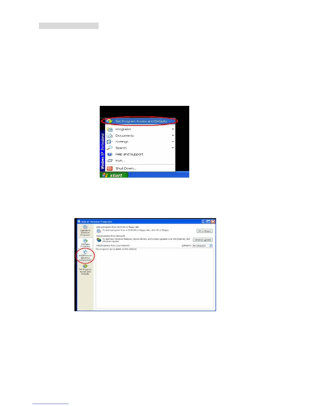 Step1: In the Start menu, point to Set Program Access and Default, and then click it. See